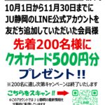 2025年10月1日 JU静岡 公式LINEアカウント開設しました♪ 友達追加キャンペーン開催!