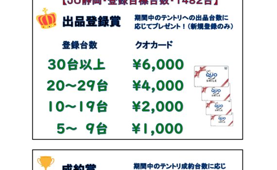 令和8年3月1日(日)~4月30日(木) JU静岡テントリ増強キャンペーン
