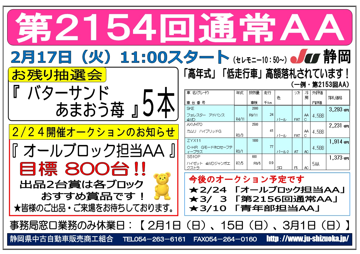 ◆令和8年2月10日(火)富士山静岡ジャンボAA・協会設立60周年記念 24時間搬出のご案内